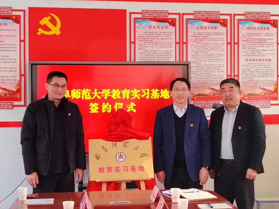 活动中,曲阜师范大学体育学部与黄店镇中学共同签订了校外实习基地协议,山东省教育厅王桂龙处长与学部党委书记许怀祥共同为“校外实习基地”揭牌。此举搭建了高校与基层学校协同发展的桥梁,既能为定陶区体卫艺教学注入专业活力,也为高校学子提供了基层实践平台,实现了资源共享、合作共赢。