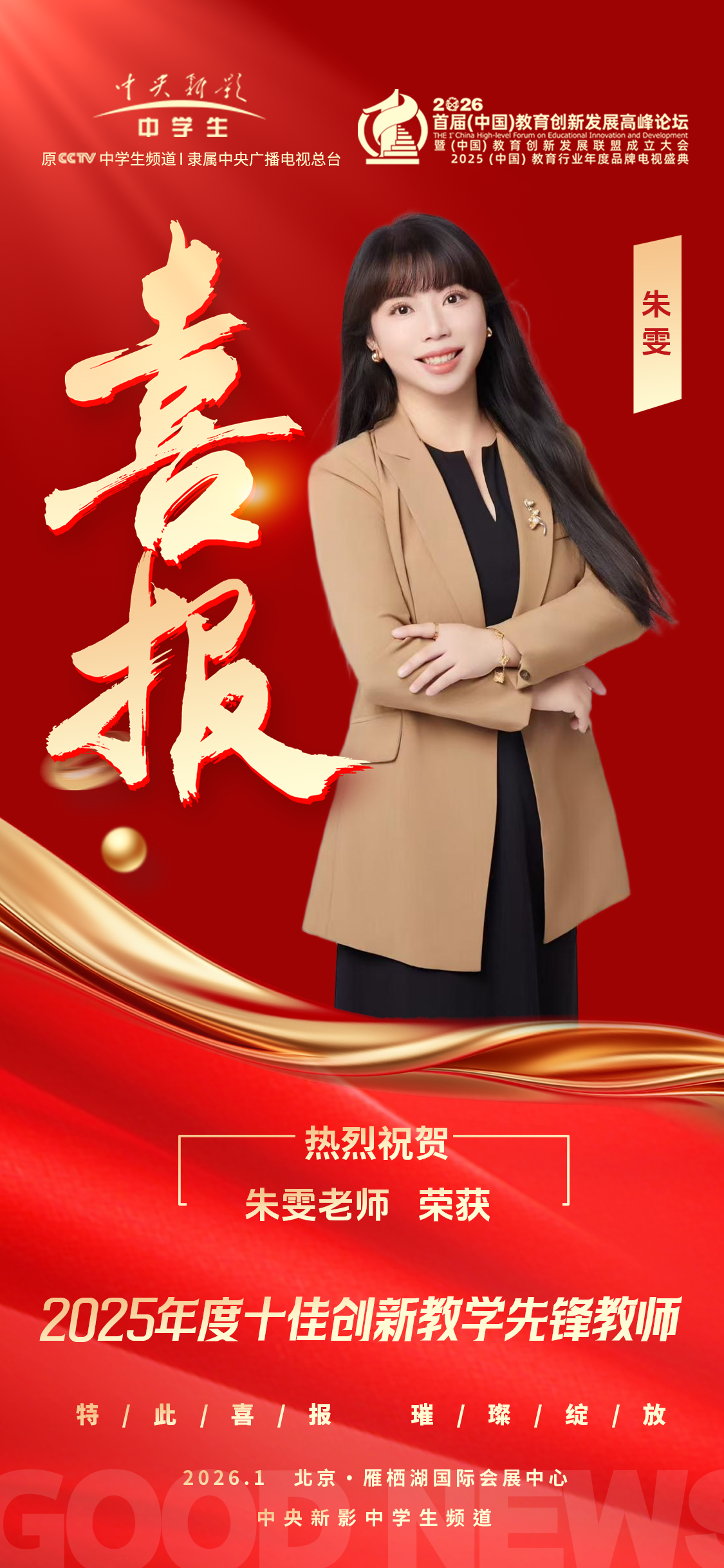 “2025年度‘十佳创新教学先锋教师’”榜单揭晓,深耕英语一线教学十余年的朱雯(Echo)老师凭借其独特的教学理念、卓越的教学成果以及对教育事业的赤诚坚守,成功获此殊荣。这份荣誉不仅是对她教学能力的高度认可,更是对她“以生为本、赋能成长”教育初心的最好见证。