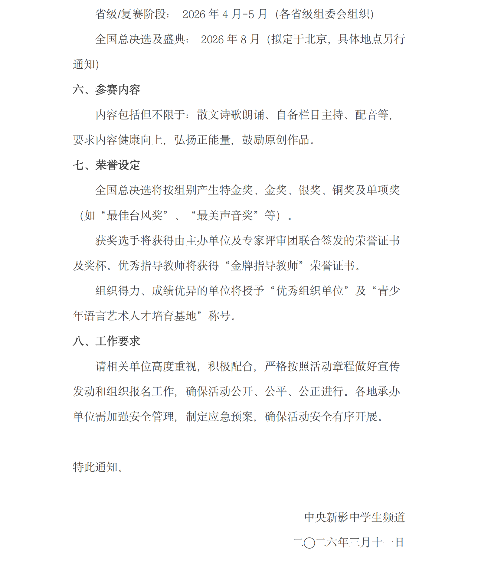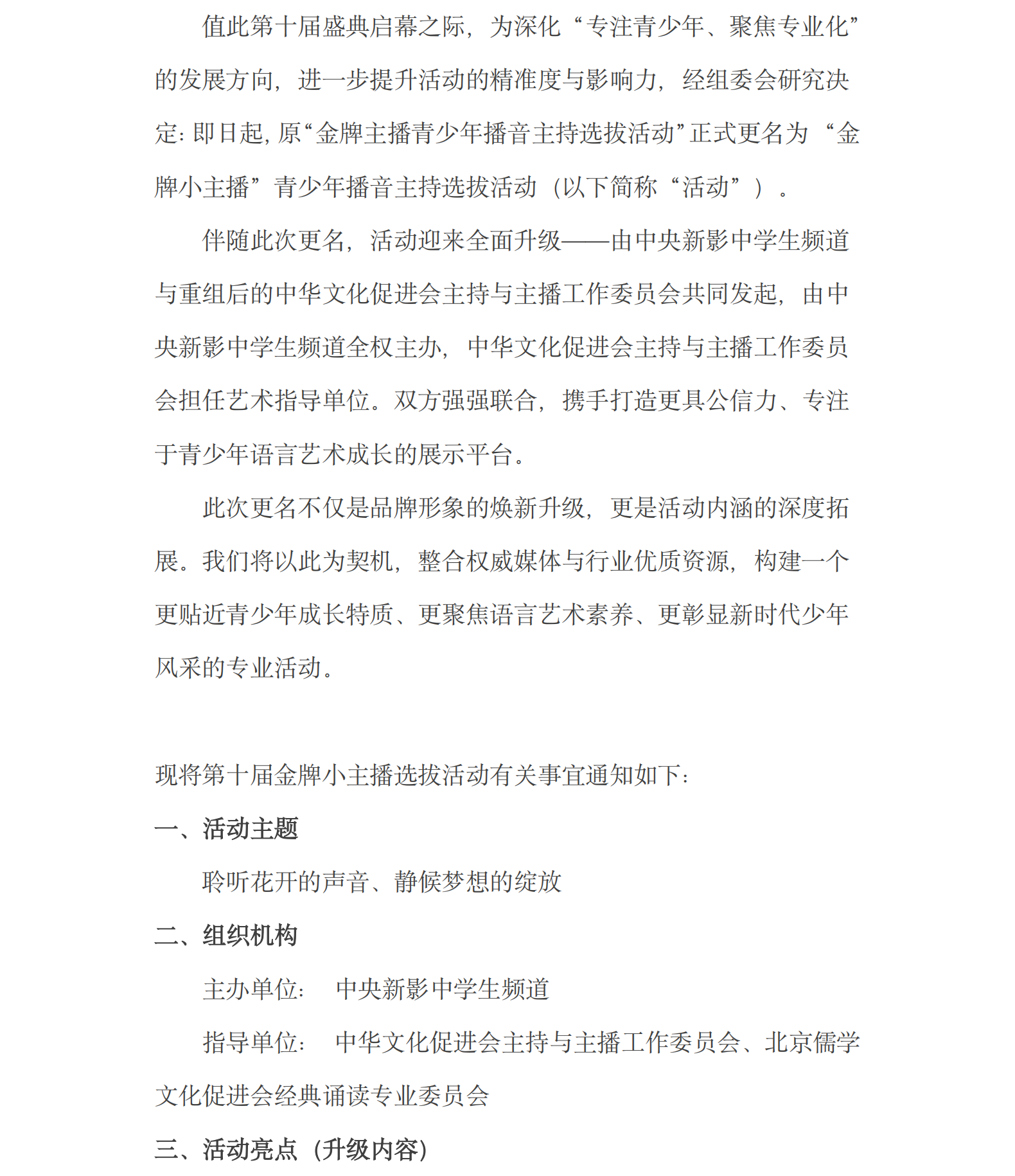 关于举办第十届“金牌小主播”青少年播音主持选拔活动的通知