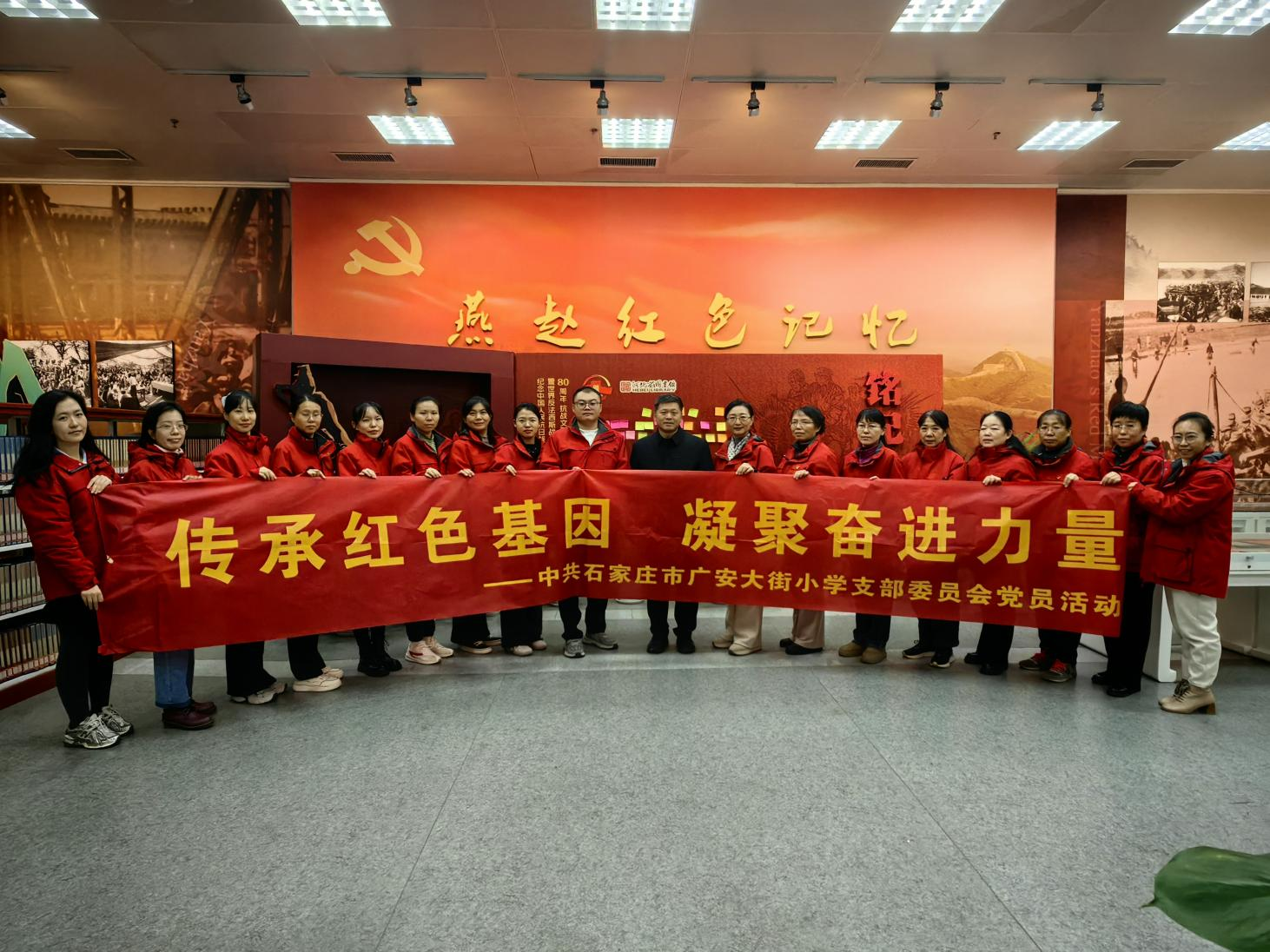为深入学习贯彻习近平新时代中国特色社会主义思想,进一步增强党员教师的历史责任感和爱国主义情怀,重温党的光辉历程与抗战精神,中共石家庄市广安大街小学支部委员会组织全体党员教师及积极分子前往河北省图书馆,开展“传承红色基因,凝聚奋进力量”主题活动。