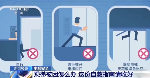 消防员介绍,电梯轿厢并非密闭空间,即使在停电状况下也可与外界保持空气连通,乘梯人无需担心窒息。如发现报警无效,被困者可间歇性呼救或拍打电梯门,以吸引他人注意,寻求帮助;而在等待救援的过程中,乘梯人切勿擅自采取自行爬出电梯、强行扒门或试图出入轿厢等危险行为,以免坠入井道。