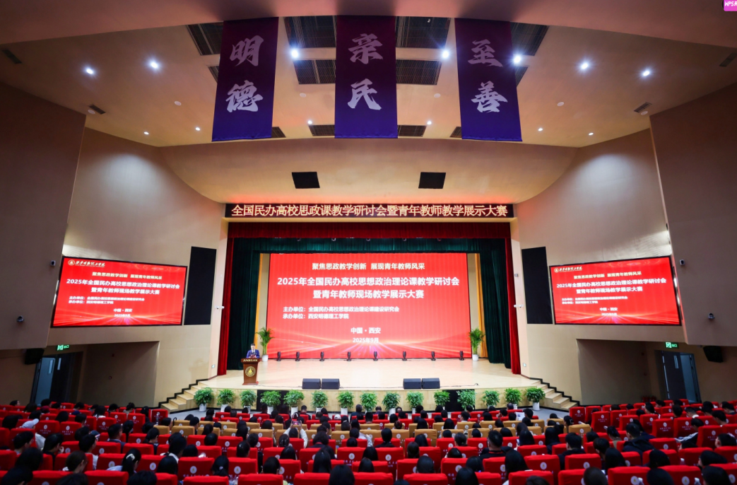 为深化高校思想政治理论课改革创新,提升思政课教师教学能力与育人水平,9月21日,全国民办高校思想政治理论课教学研讨会暨青年教师教学展示大赛在西安明德理工学院成功举办。来自全国47所民办高校思政领域的专家学者、青年教师代表等一百余人齐聚一堂,共话思政课建设新路径,共展青年教师教学新风采。