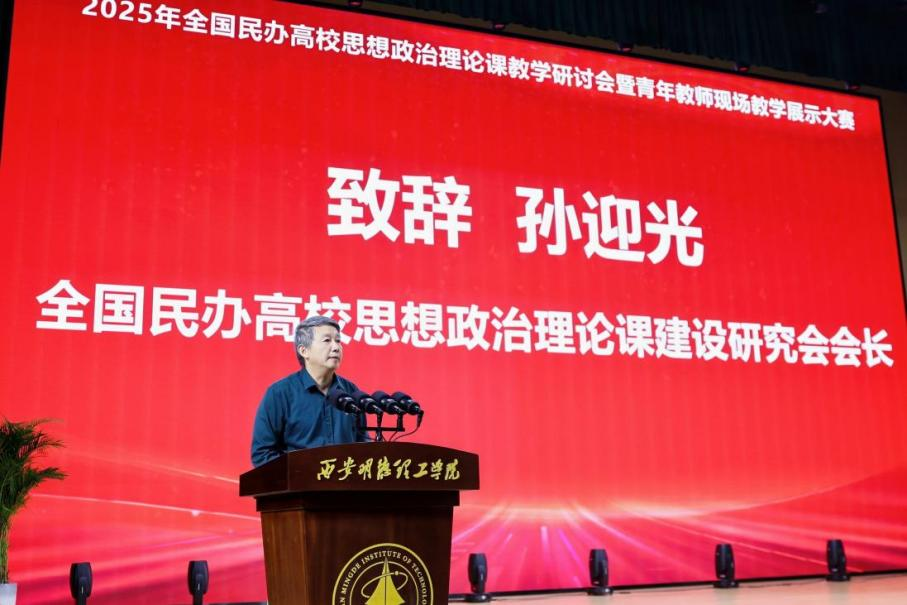 孙迎光在致辞中充分肯定了西安明德理工学院为本次活动所做的筹备工作。他结合当前民办高校思政课建设的形势与任务,强调要聚焦思政课的思想性、理论性、针对性、亲和力,推动民办高校思政课建设走深走实,为培养担当民族复兴大任的时代新人贡献力量。