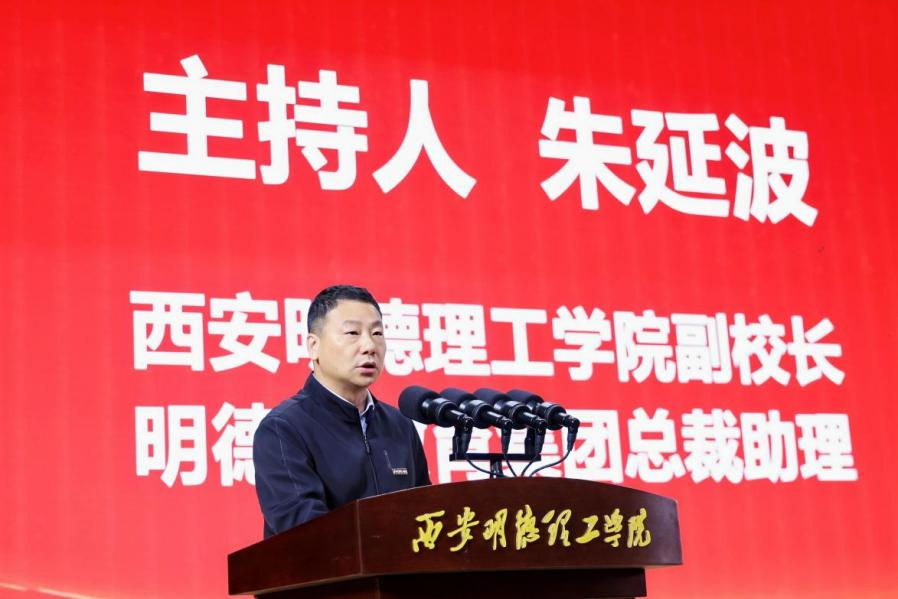 开幕式后,活动进入专家主题报告阶段,西安明德理工学院副校长、明德源科教集团总裁助理朱延波主持报告会。