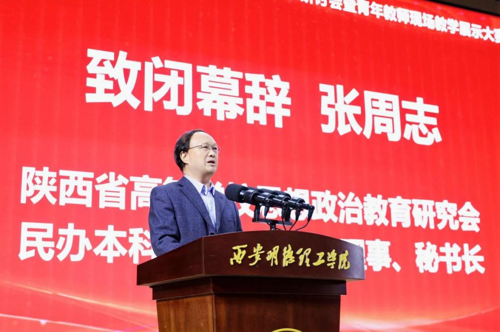 最后,陕西省高等学校思想政治教育研究会民办本科高校分会常务理事、秘书长张周志致闭幕辞。他对本次研讨会与大赛的成功举办给予高度评价,指出本次活动为全国民办高校思政课教师搭建了交流学习、展示自我的优质平台,取得了丰硕的学术成果与实践成果,希望各民办高校以此次活动为纽带,持续加强交流合作,共同推动陕西乃至全国民办高校思政课建设迈向新高度。