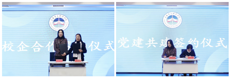 会上,文化传媒学院院长王玉英、党总支书记何蔷分别与长春鹿港商贸有限公司总经理唐丽丽签署校企合作协议及“党建和创”活动倡议书,这标志着学校在深化产教融合、以党建引领非遗事业发展方面迈出坚实步伐,将有效推动非遗领域协同育人与项目合作落地。