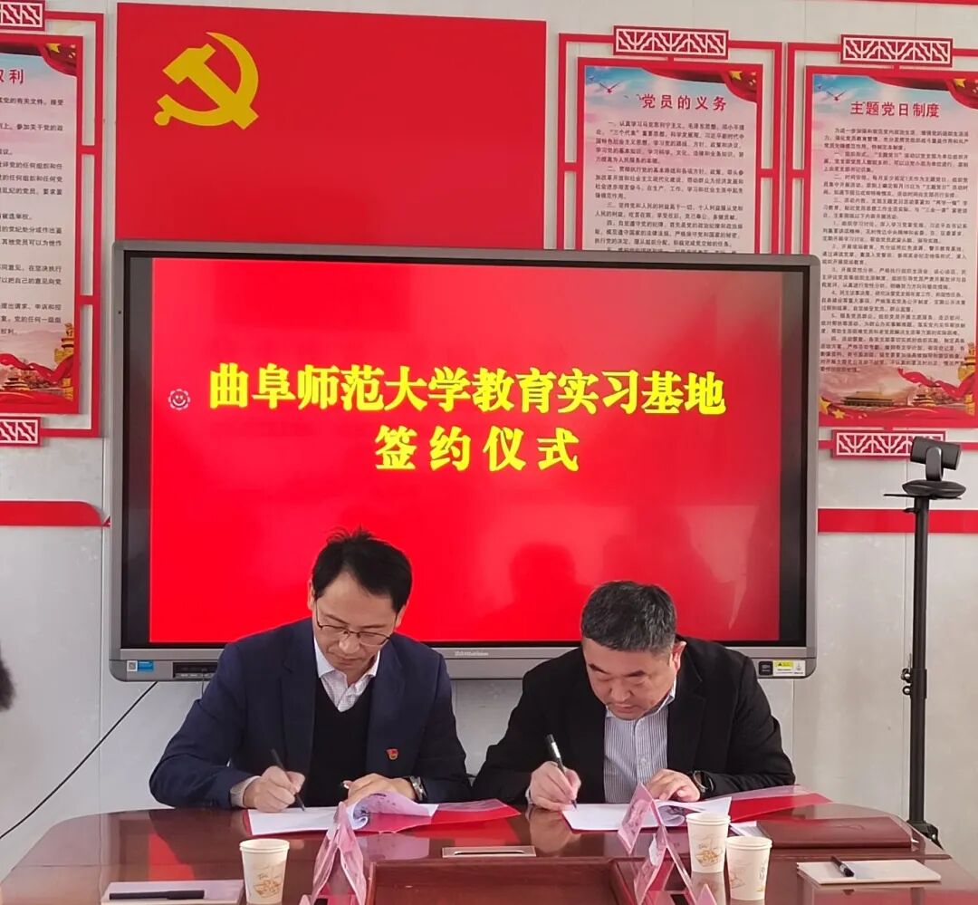 活动中,曲阜师范大学体育学部与黄店镇中学共同签订了校外实习基地协议,山东省教育厅王桂龙处长与学部党委书记许怀祥共同为“校外实习基地”揭牌。此举搭建了高校与基层学校协同发展的桥梁,既能为定陶区体卫艺教学注入专业活力,也为高校学子提供了基层实践平台,实现了资源共享、合作共赢。