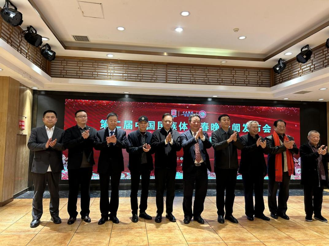 第二届中国民族体育春晚有中华曲艺学会、玖合云启(北京)国际传媒有限公司联合主办,主持人闫嘉欣逐一介绍了到场的各位领导嘉宾:国家质检总局原总检验师、华夏文化促进会会长项玉章;中国广电联合会全民国防宣传教育委员会会长郑志宏;中华曲艺学会常务副会长葛庆龙;中央保健局专家组原组长朱兴;中央民族大学原校长郭广生;中国武术九段、公安大学教授韩建中;国家级非遗心意六合拳传承人李洳波;国家广电总局管理局原局长郭锋;中央广播电视总台“云听”首席战略官李正国;人民日报《中国城市报》社中国城市网主任李自超;环球网副总经理李留申;中国农村信用合作报副社长党云帆等参加了本次发布会。