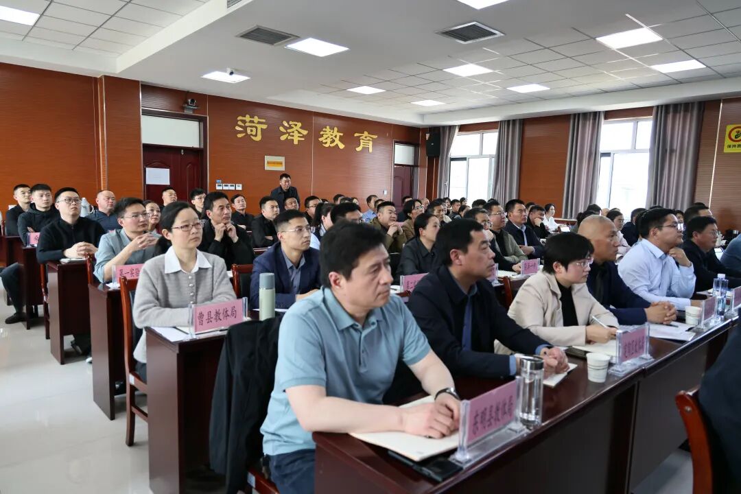 会上,东明县、定陶区、曹县、牡丹区教体局及市第一实验小学分别围绕学生体质健康、近视防控、校园食品安全、学校美育等作典型交流发言。